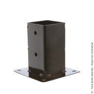 La platine est l'élément qui permet la fixation du support dans le sol, elle doit être vissée. Tandis que le tube de forme carrée est la partie dans laquelle le poteau de bois vient se glisser.